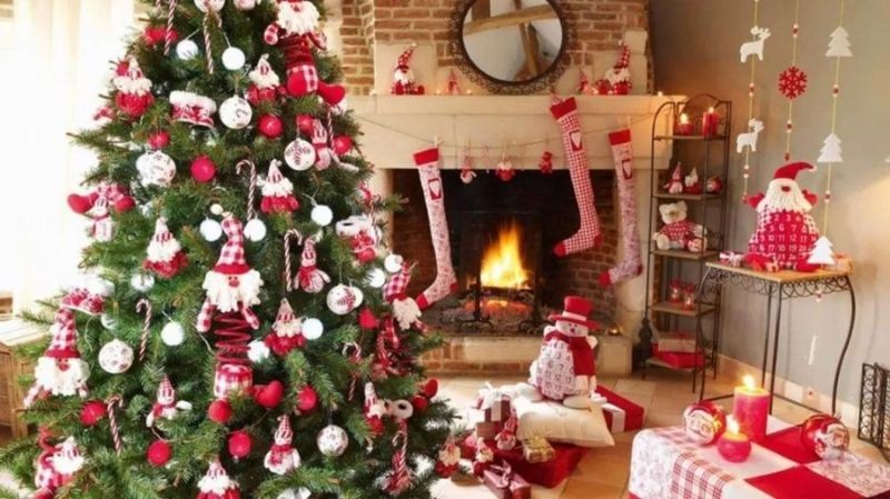 • игрушки из разных материалов (стекло, пластик, перья, фетр, атлас и т. д. ) в одной цветовой гамме
