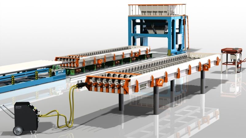 Линия используется для серийного изготовления многопустотных плит перекрытий из железобетона методом виброформования в металлоформах.