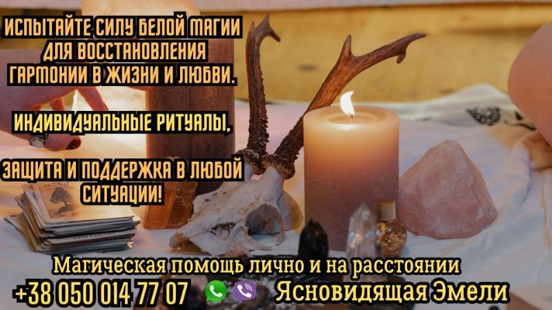 Ясновидящая, экстрасенс и таролог Эмели предлагает свою магическую помощь в самых сложных жизненных ситуациях. С её даром и многолетним опытом вы сможете найти ответы на важные вопросы и изменить свою судьбу к лучшему.