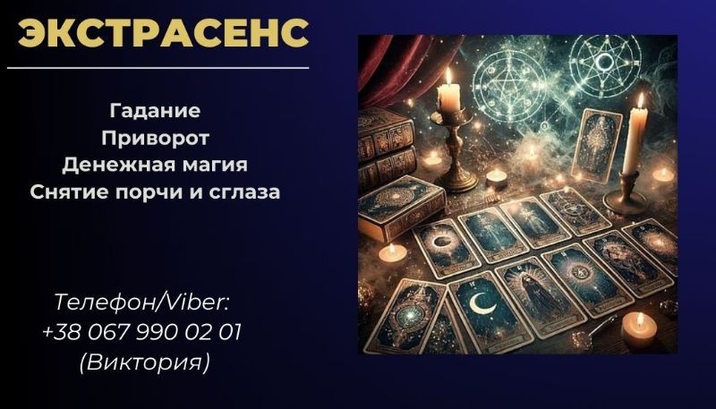 Ищете квалифицированную магическую помощь? Меня зовут Виктория, я экстрасенс, таролог, рунолог с многолетним опытом работы в магии и эзотерике, готова помочь вам выйти из любой сложной ситуации. Принимаю как лично, так и дистанционно, поэтому не имеет значения, где вы находитесь — эффективность помощи гарантирована.