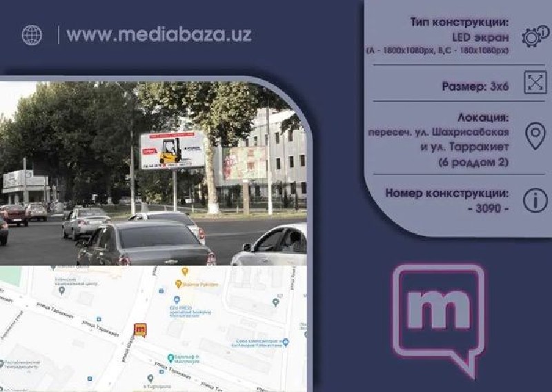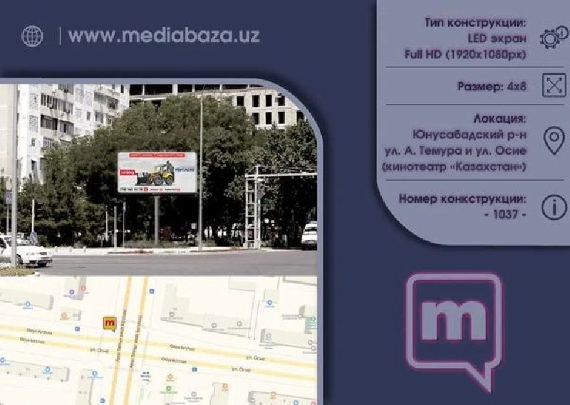 Географическое покрытие — размещение на ключевых трассах и центральных улицах Ташкента. »