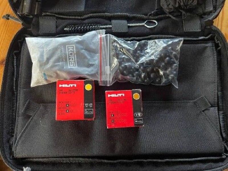 Продам новый бульдог курс, 6 выстрелов коричневыми хилти, два выстрела зелеными гефест. Состояние отличное, весь комплект, плюс коричневые хилти 93 штуки, желтые хилти 100 штук и зеленые гефест 98шт. Плюс пачка Шаров резиновых 100шт.