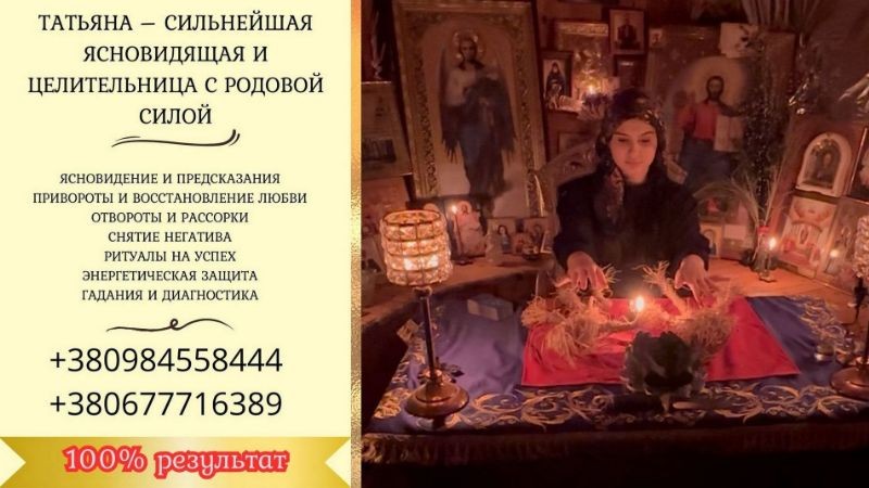 Татьяна — практикующий специалист из Киева: целитель, таролог, ясновидящая, травница. Она проводит индивидуальную диагностику и очищение на энергетическом уровне, используя карты Таро, интуитивные практики и проверенные рецепты народной медицины. Все консультации доступны дистанционно — через WhatsApp, Viber и Telegram.