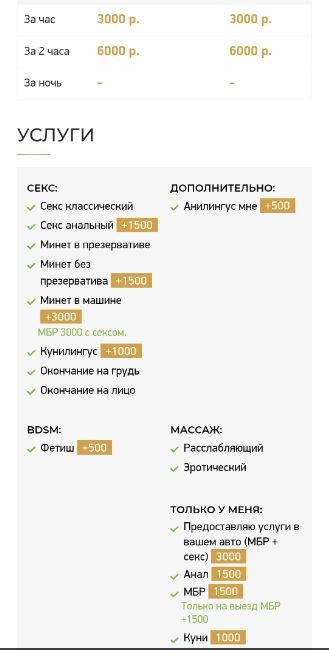 При выезде к вам: МБР +1500, куни +1000, анал + 1500, анилингус в мою сторону +500.