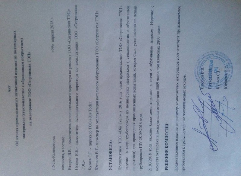 Имеется АКТ производственно-промышленных испытаний.