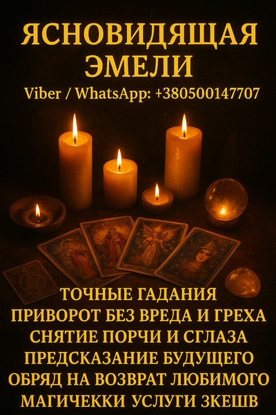 Эмели — ясновидящая, таролог и практикующий экстрасенс с большим опытом. Уже много лет она помогает людям наладить личную жизнь, вернуть гармонию и увидеть реальные пути к переменам.