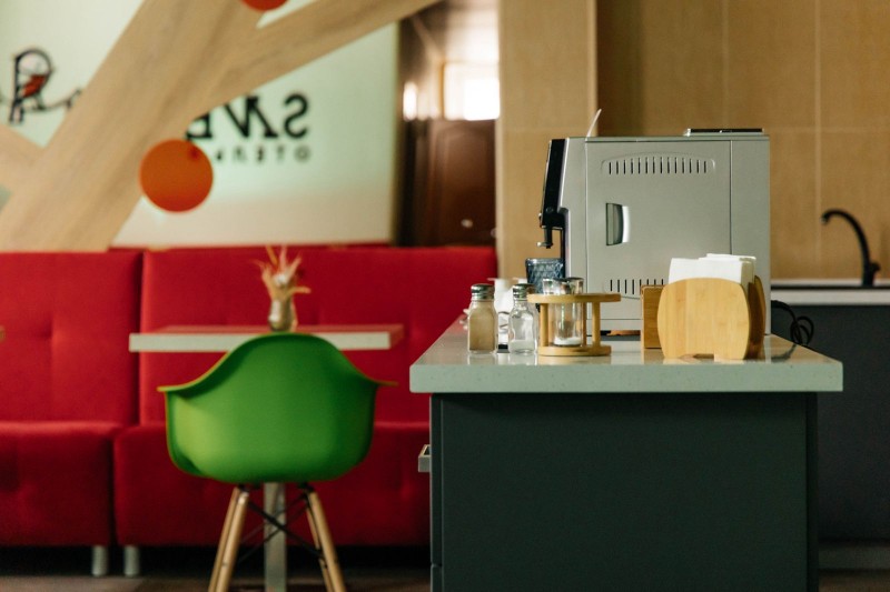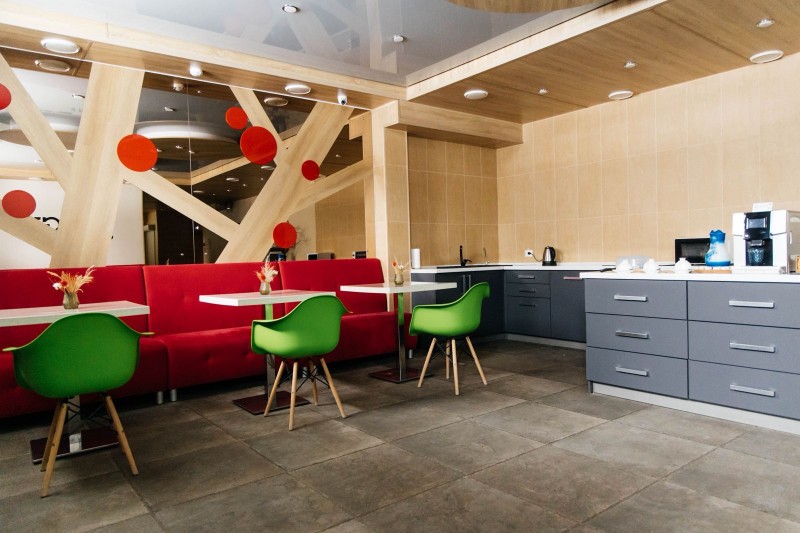 Лаунж зона, зерновой кофе и снеки.