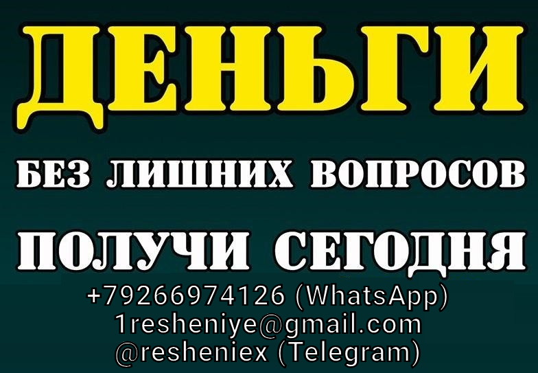 Гарантированный кредит для каждого. Кредитная история других банков на решение не влияет. Главное условие отсутствие задолженности перед моим банком. Без залога и поручителей, без предоплаты в любом виде. Просрочки в других банках, МФО не влияют на решение. Долги по судебным приставам не могут помешать в оформлении. Оформляю кредит без кредитного скоринга, поэтому гарантирую результат. Получение официально в отделении банка. Все честно и законно. Все регионы РФ. Работаем в ускоренном темпе без выходных и праздников. Просьба писать на электронную почту 1resheniye@gmail. com, WhatsApp +7-926-697-41-26 или Telegram @resheniex