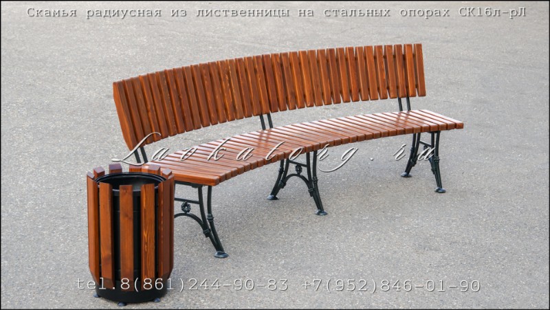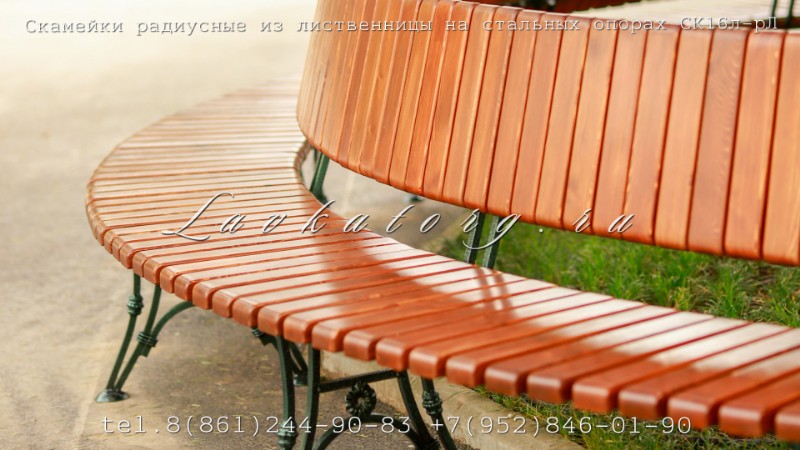 Радиусные скамейки со спинкой из лиственницы СК16л-рЛ