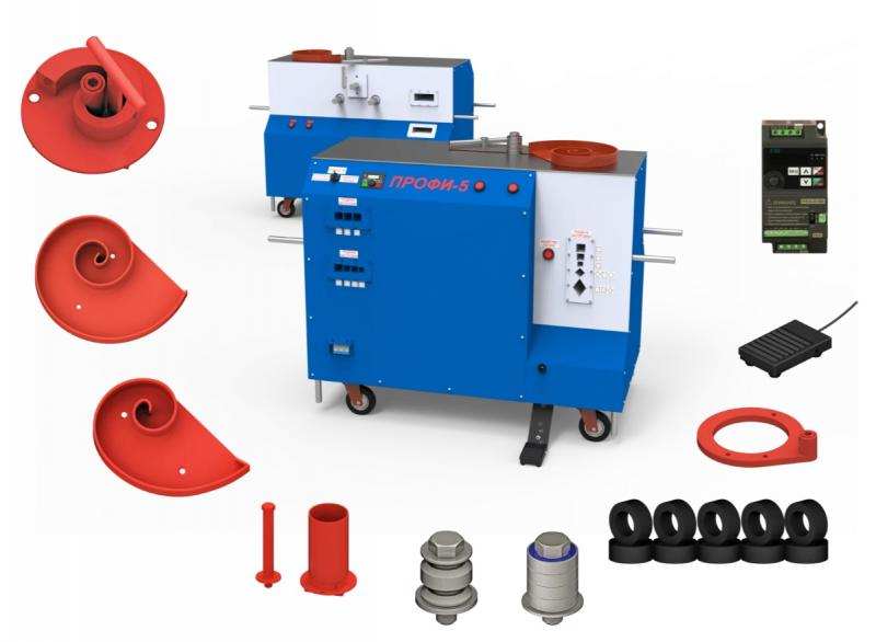 В комплект уже входят: декоративный блок сдавливания, трубогиб, комплект лекал, набор роликов, педаль управления, оснастка для колец и петель.