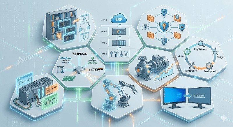 Программисты и инженеры ООО «Альянс Автоматика» обеспечивают полный цикл: от написания технического задания и разработки алгоритмов до отладки кода на объекте и обучения вашего персонала. Мы создаем интеллектуальные системы, которые делают ваше производство понятным, управляемым и максимально эффективным.